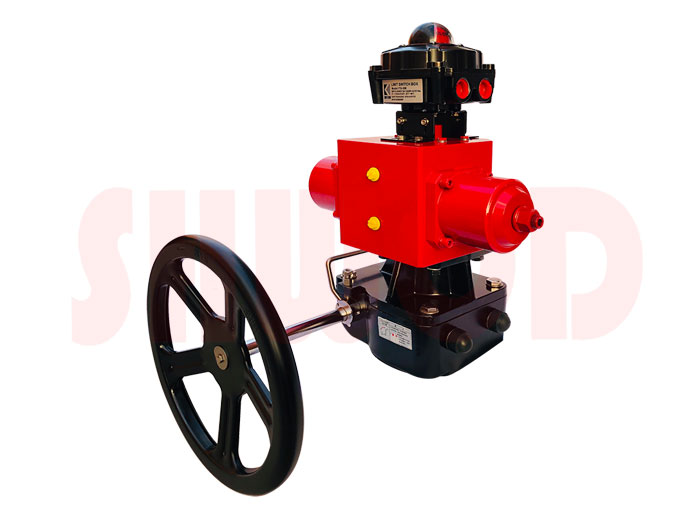 本執行器附帶手動裝置,使用時,向上拉起手柄,轉動手輪,即可實現開閥和關閥。