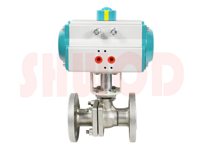 氣動法蘭球閥具有開關速度快,流通能力大,密封性能好等特點,是由法蘭球閥與氣動執行器連接組成,根據作用形式不同可分為開關型和調節型兩種。氣動法蘭球閥打開時,閥體通道和連接管徑形成一個通口,介質可毫無阻力的流過,除了用於油品、氣體、液體等介質外,還適宜控製汙水和含有纖維性雜質的介質。氣動法蘭球閥裝配上閥門定位器輸入4-20mA的模擬量信號,可對氣動球閥的閥芯開度進行0-90度的任意控製,從而達到介質流量、溫度、壓力等參數的比例式調節。